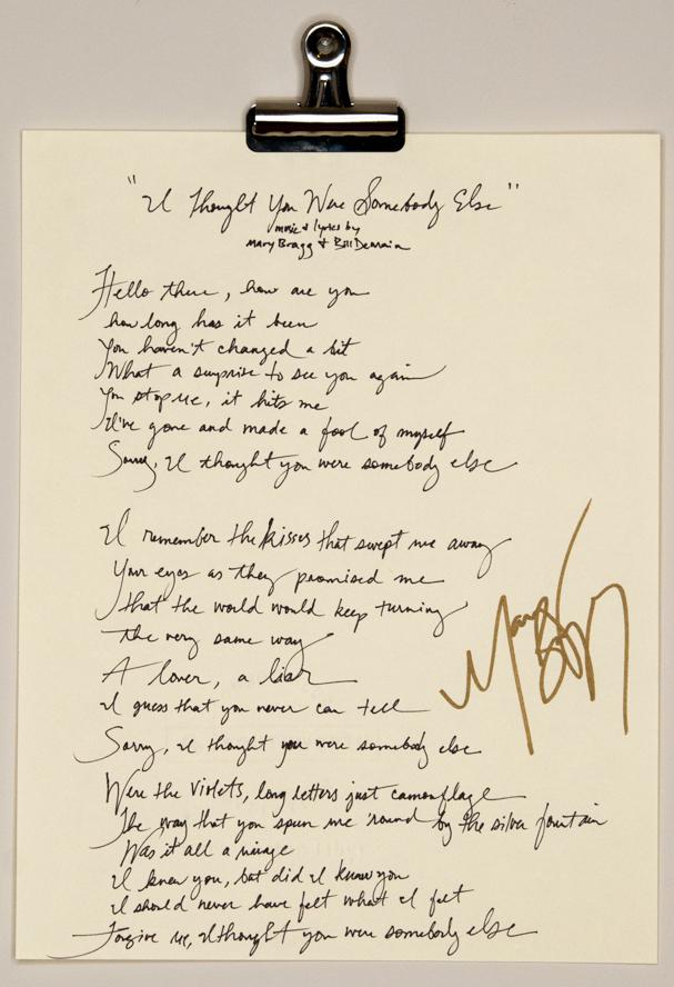 Give the gift of a one-of-a kind handwritten lyric of your favorite Mary Bragg song, handwritten by Mary.